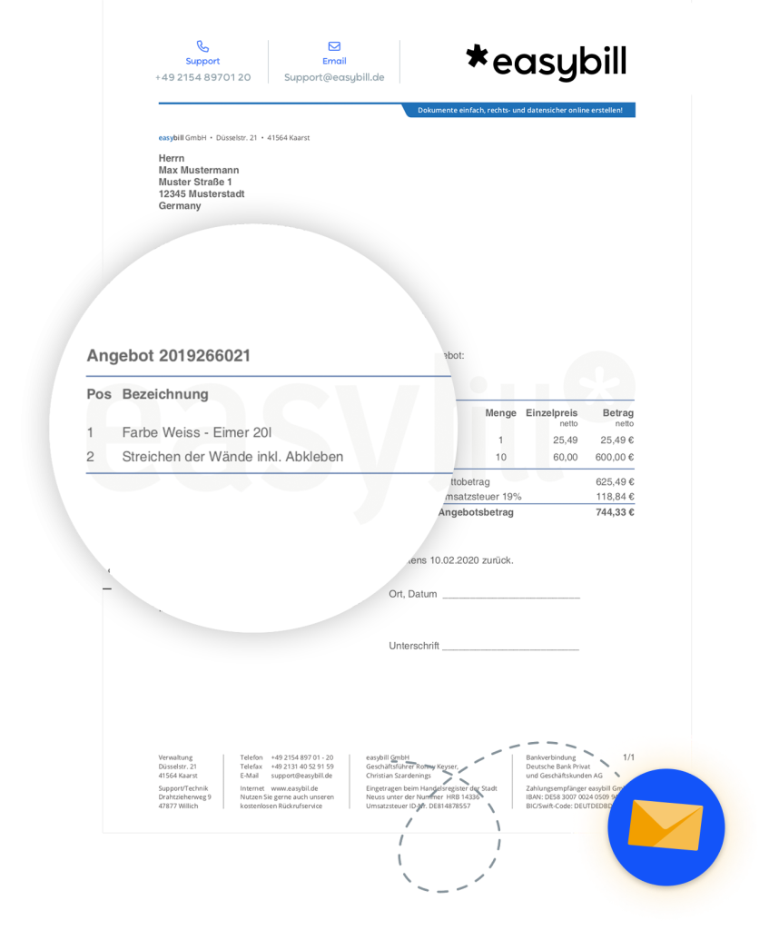 easybill provides you with an offer template for free download. See for yourself how easy it is to create offers and manage customers with easybill. Components of an offer